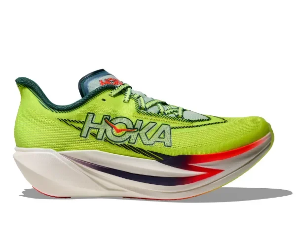 The Hoka Rocket X 3 differentiates itself from other carbon-plated racers with a more stable, controlled feel, pairing a winged carbon fiber plate and dual-density PEBA foam to deliver propulsion without the overly soft or unstable sensation found in some max-stack competitors. Compared to the Rocket X 2, the v3 adds improved stability, a smoother rocker transition, and better outsole grip, creating a more versatile and confidence-inspiring race shoe that still prioritizes speed on race day.
