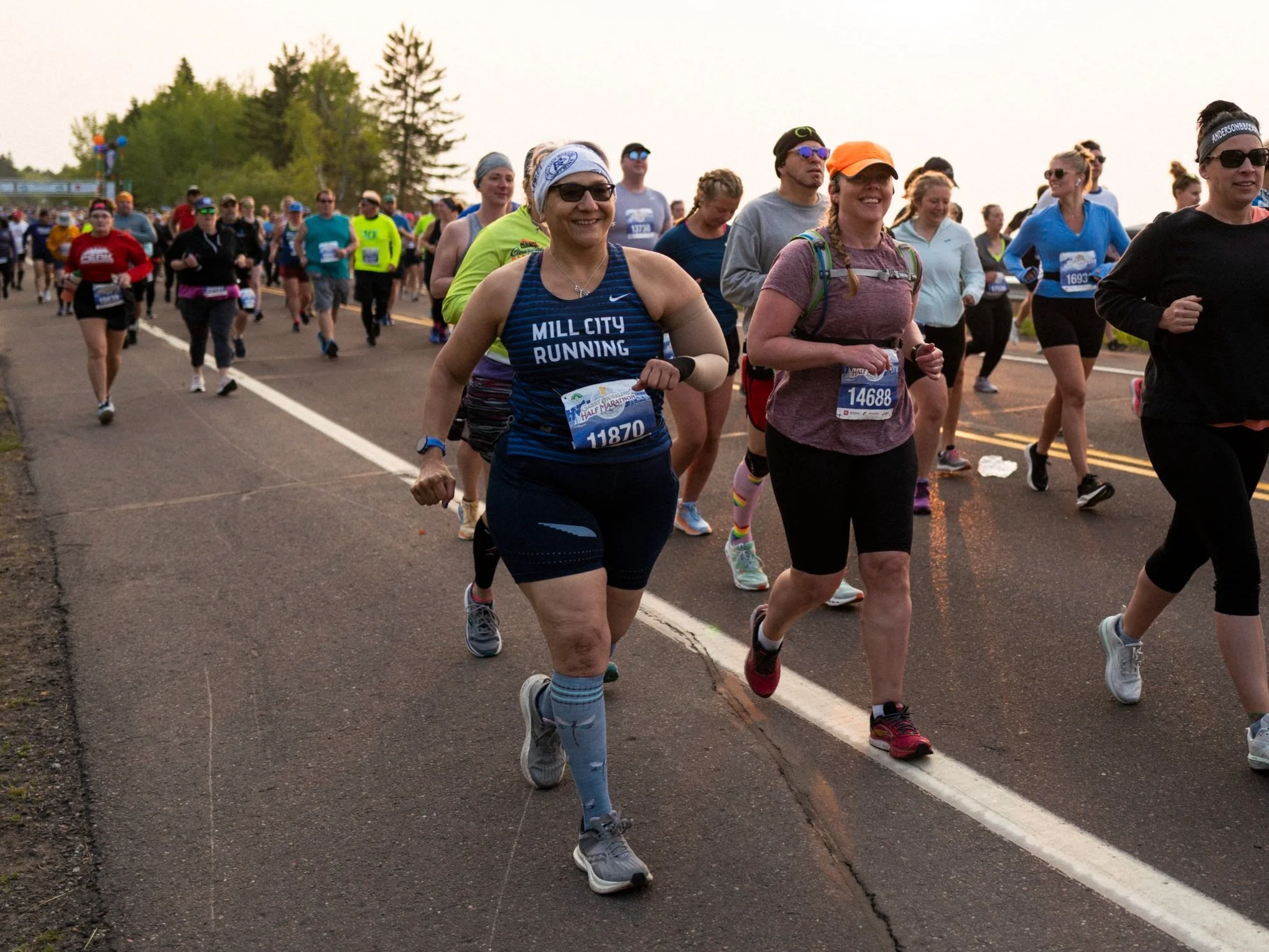 You’ll find the Mill City Running Race Team training, racing, and cheering through the dark of winter and heat of summer. With an emphasis on supporting all paces, no matter where you finish on race day, our core principle is the front supports the back and the back supports the front.
